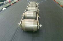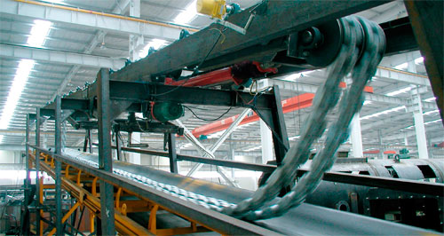 工作方式 被收放的鏈碼條布置在皮帶秤上方,鏈碼條不動,類圓形碼塊在